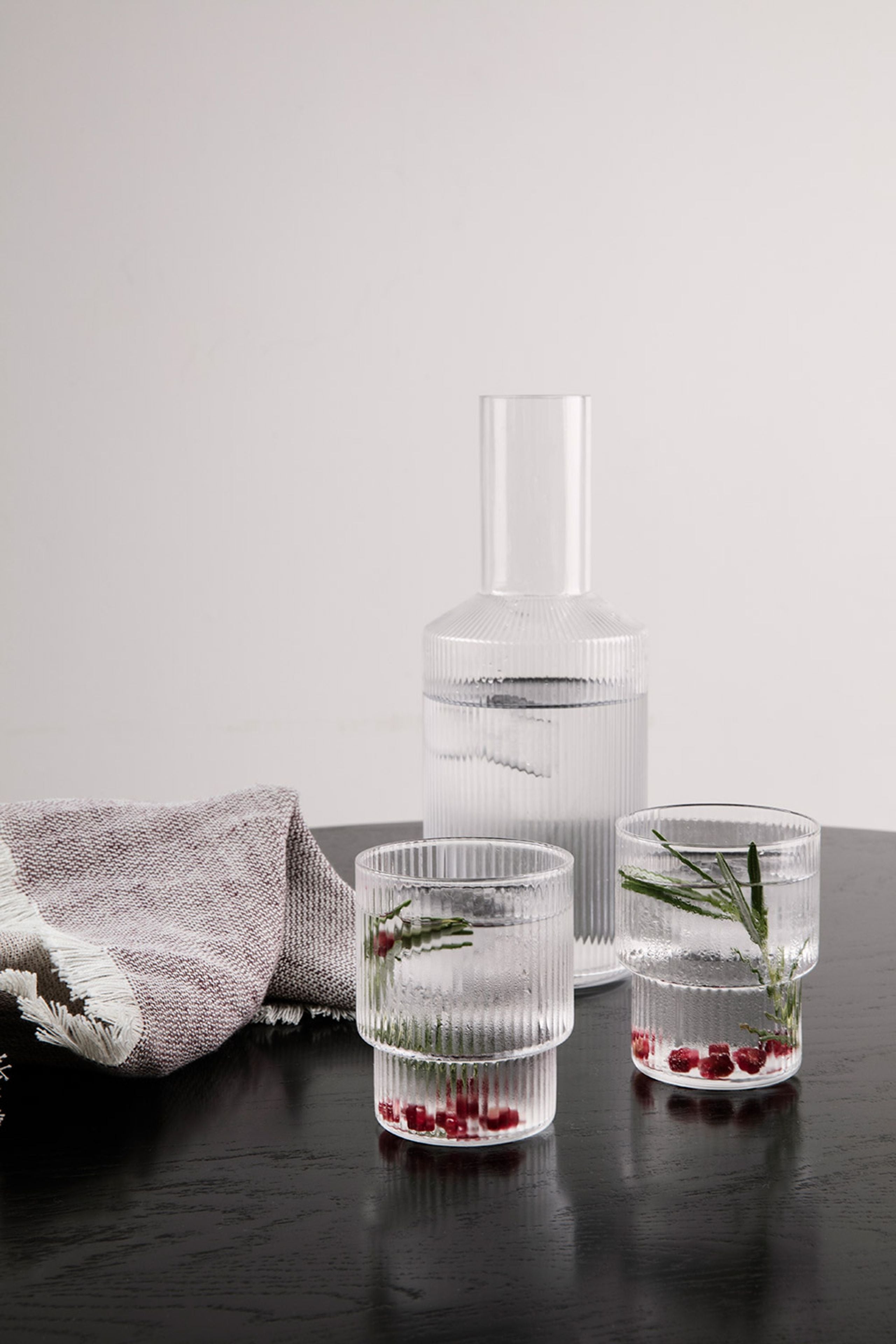 Ripple Glass di Ferm Living è un set di 4 bicchieri in vetro soffiato zigrinati. I 4 bicchieri sono tutti differenti tra di loro, rendendo ogni set unico nel suo genere. Nonostante la leggerezza e il design fino, questi bicchieri risultano molto resistenti e adatti all'utilizzo quotidiano.
