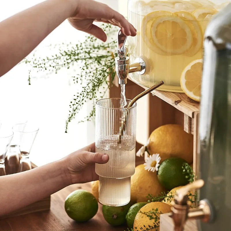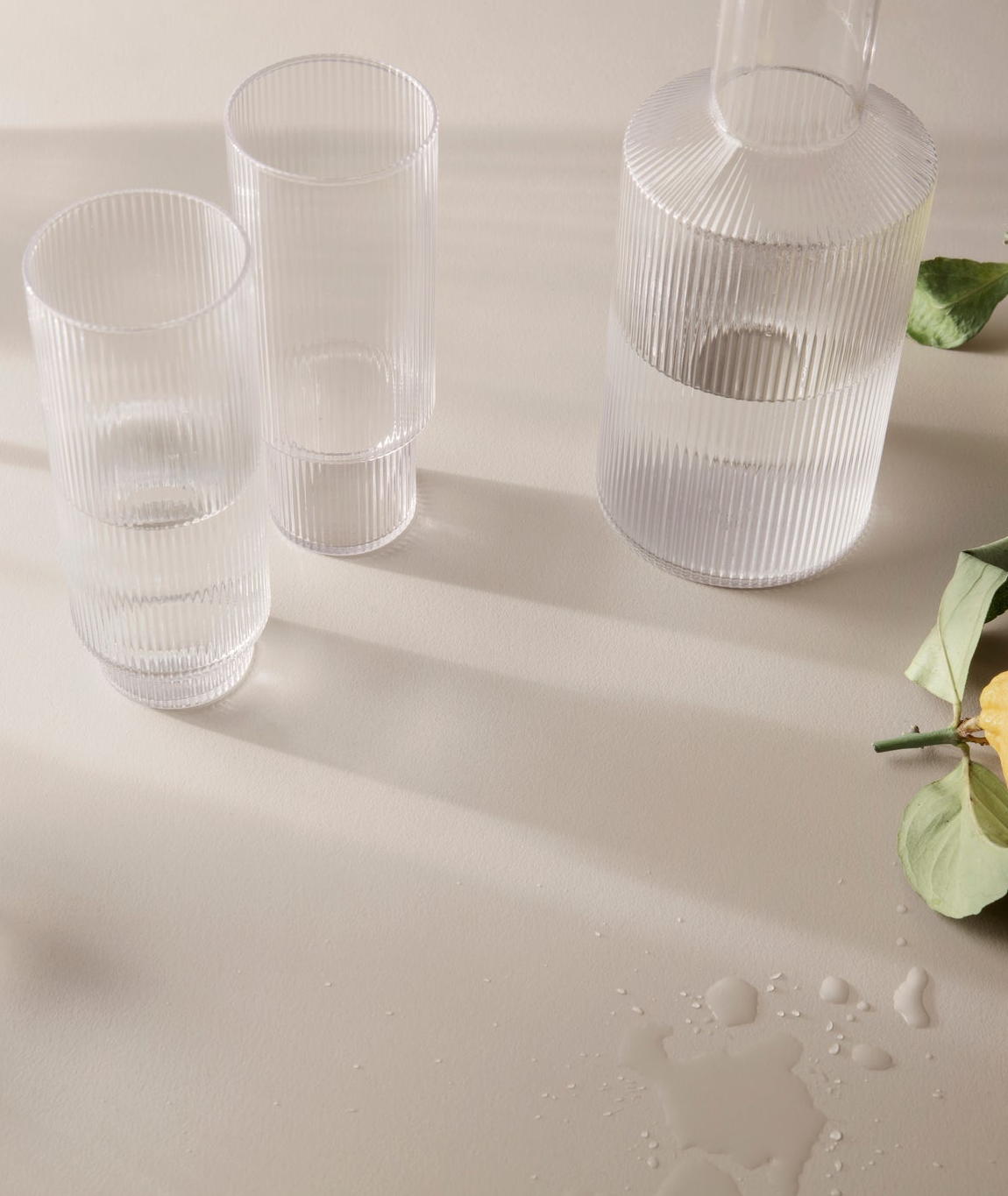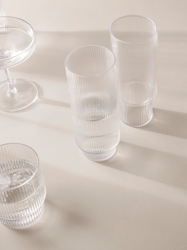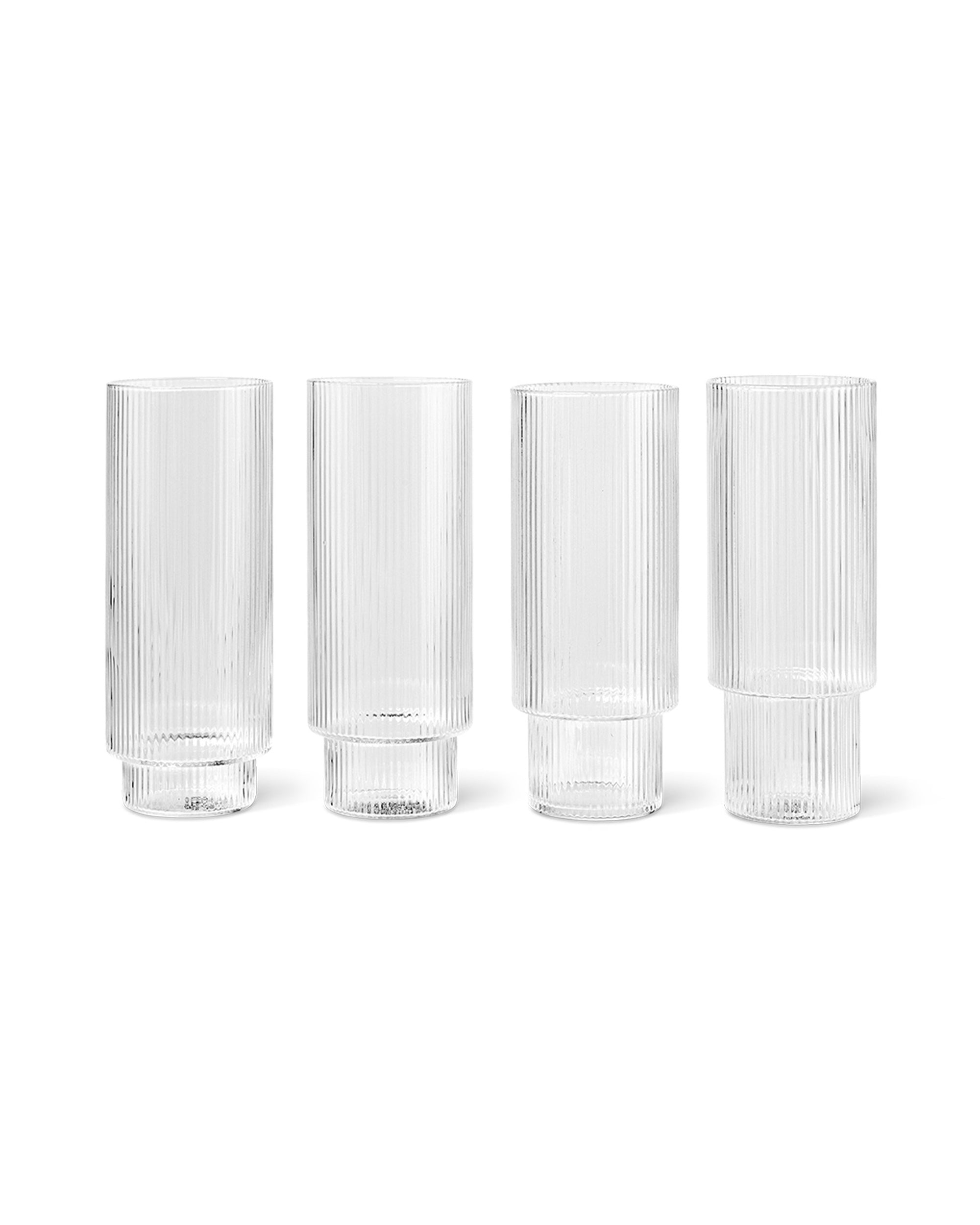 Ripple Glass di Ferm Living è un set di 4 bicchieri alti in vetro soffiato zigrinati.