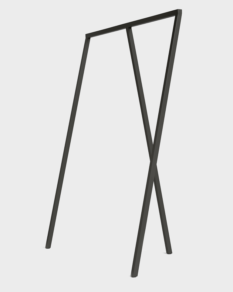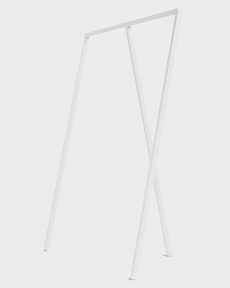 Ispirato al design del cavalletto a tre gambe creato da Leif Jørgensen per il famoso negozio di lifestyle e fashion The Storm di Copenaghen, il Loop Stand trasporta l'iconico stile del tavolo Loop Stand Table in una versione verticale.