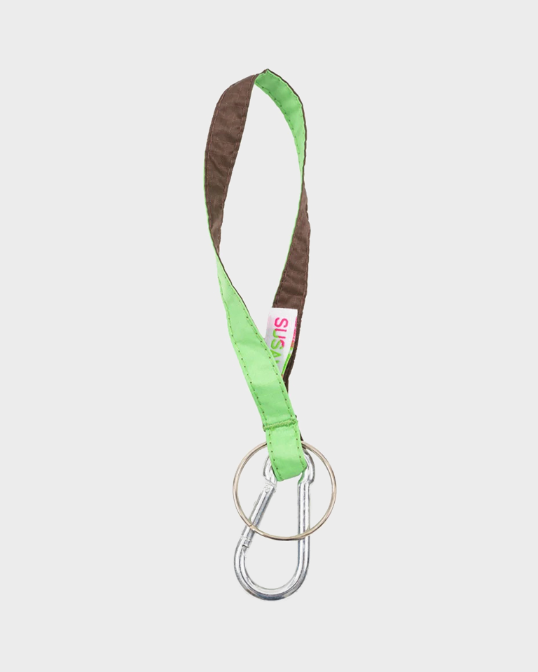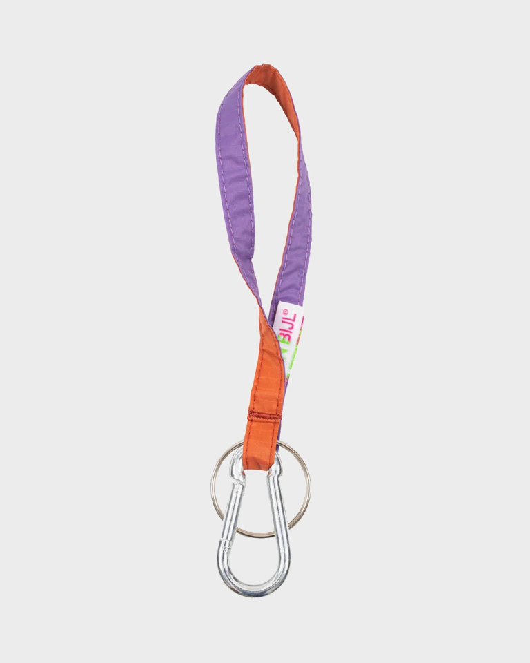 La New Keychain di Susan Bijl è realizzata in nylon di alta qualità Ripstop riciclato e certificato Bluedesign®. Ogni Keychain è rifinita da un moschettone e da un anello in ferro.
