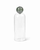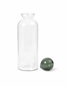 Il tappo in vetro colorato a forma di sfera si posiziona come una bolla d'aria sulla bocca della caraffa realizzata a mano, progettata per contenere elegantemente acqua, succhi o altri liquidi.